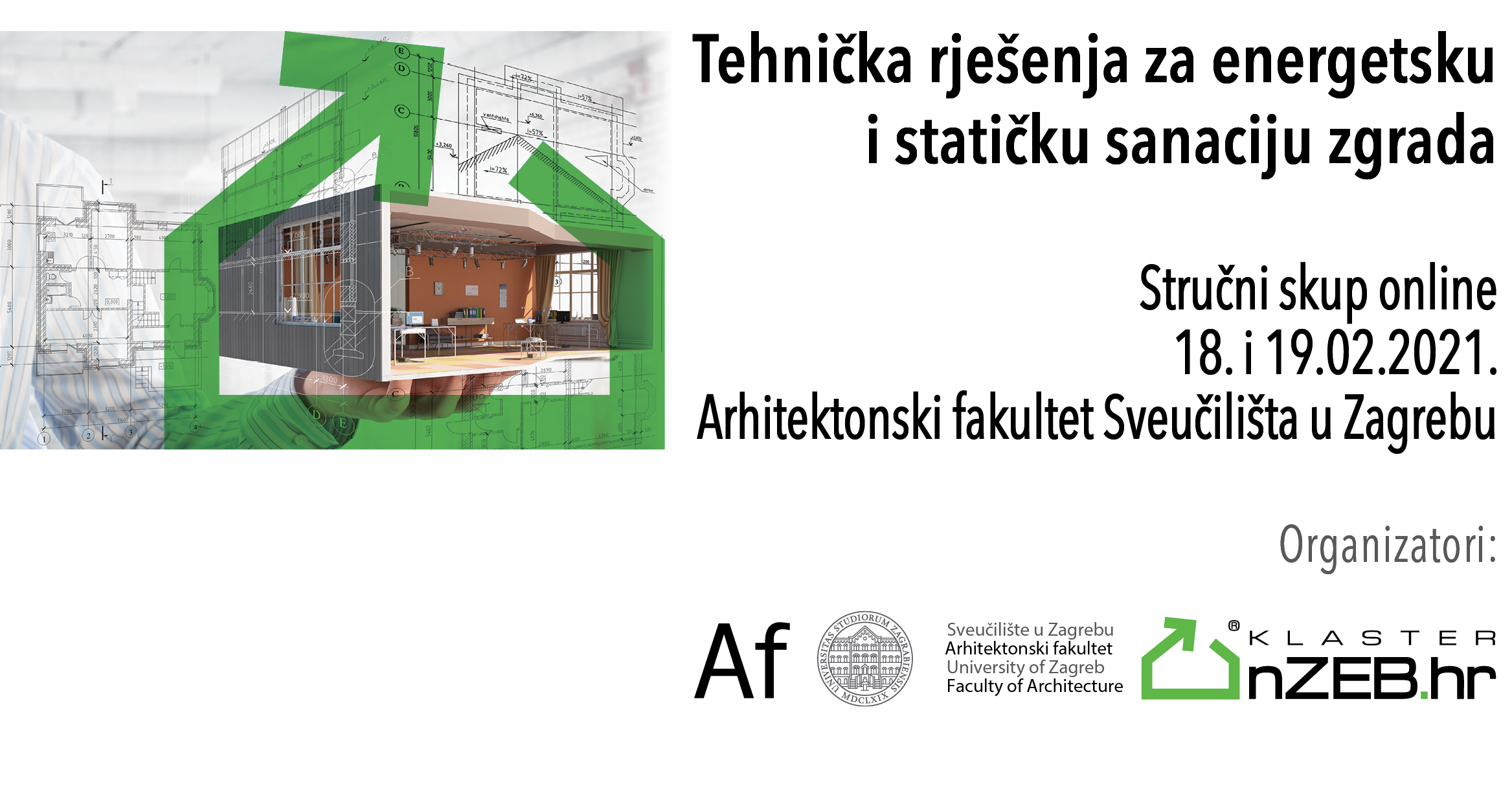 U organizaciji Arhitektonskog fakulteta Sveučilišta u Zagrebu i Klastera za energetsku učinkovitost i održivost u zgradarstvu – nZEB.hr u sklopu aktivnosti Stručnog usavršavanja AF-a održan je dvodnevni online stručni skup 18. i 19. 02. 2021. godine kojeg je pratilo više od 1000 ljudi putem webinara i livestreama na www.nZEB.hr, Facebook profilu Arhitekonskog fakulteta te na stranicama www.dom2.hr.